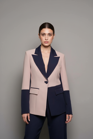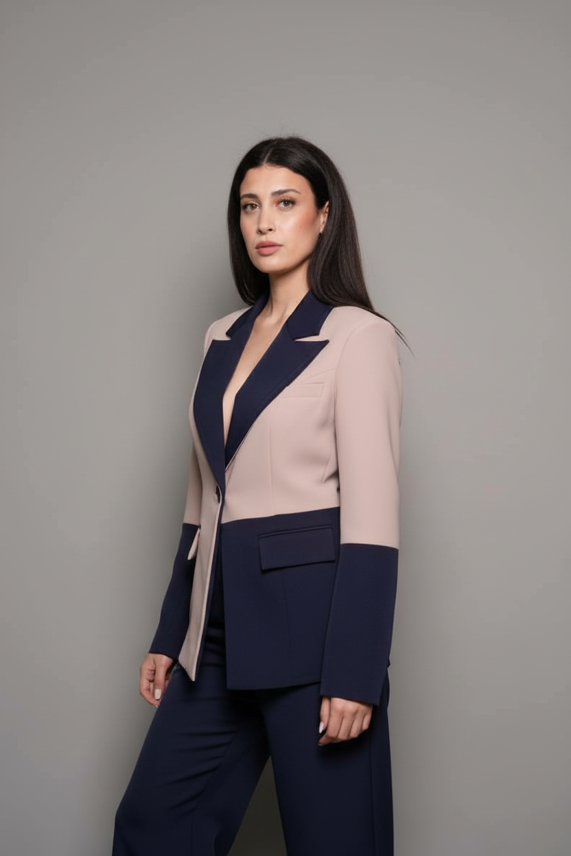 This two-tone tailored jacket is designed for the woman who leads with style and presence.