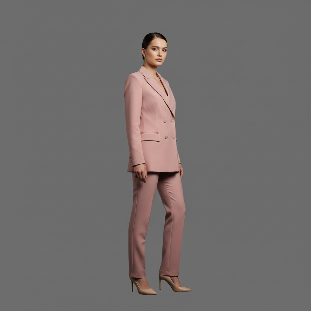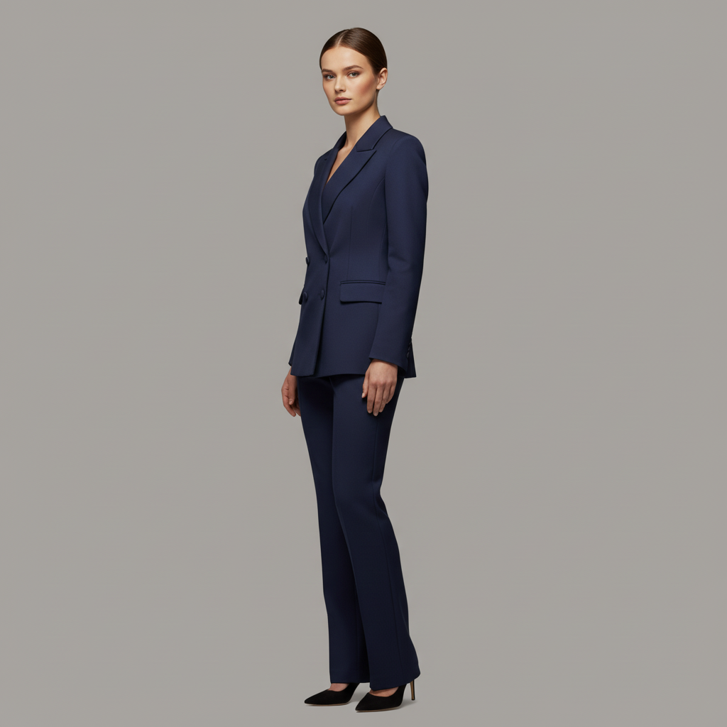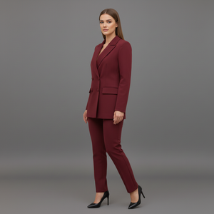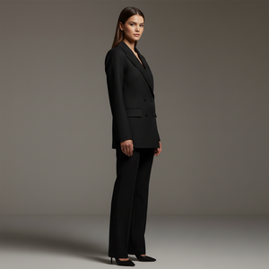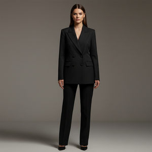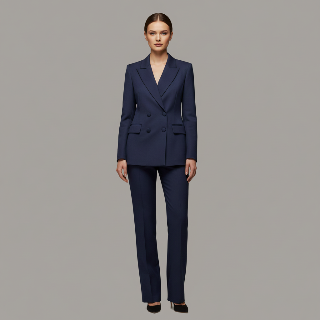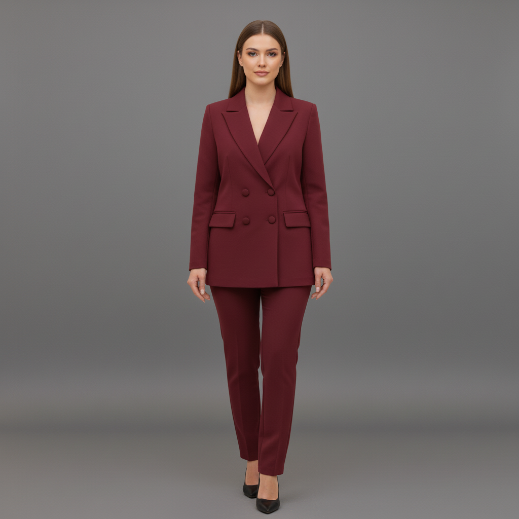 This Double-Breasted Tailored Suit features a structured blazer with sharp lapels and clean lines, paired with straight-leg trousers that create a polished and elongated silhouette. Crafted from premium fabric, it offers an elegant drape, comfortable wear, and a timeless presence suitable for business meetings, formal events, and evening occasions.