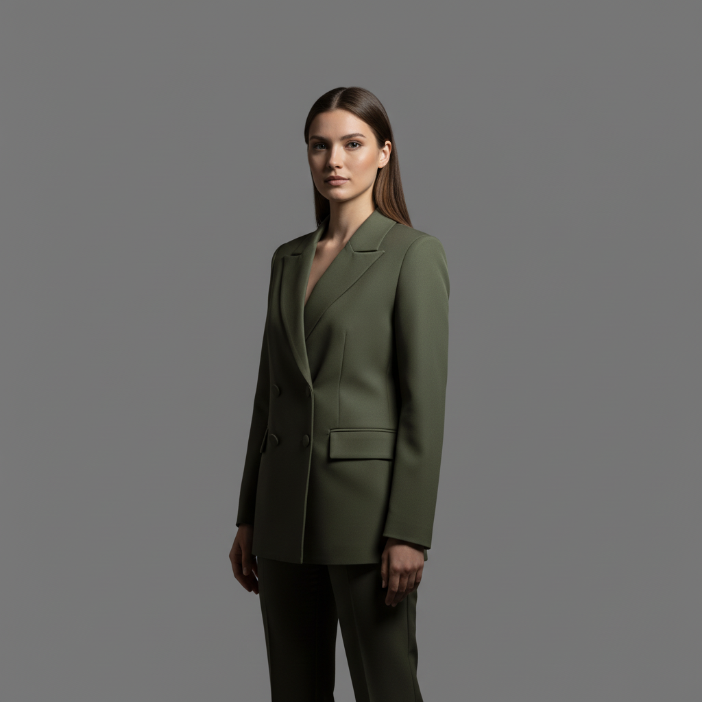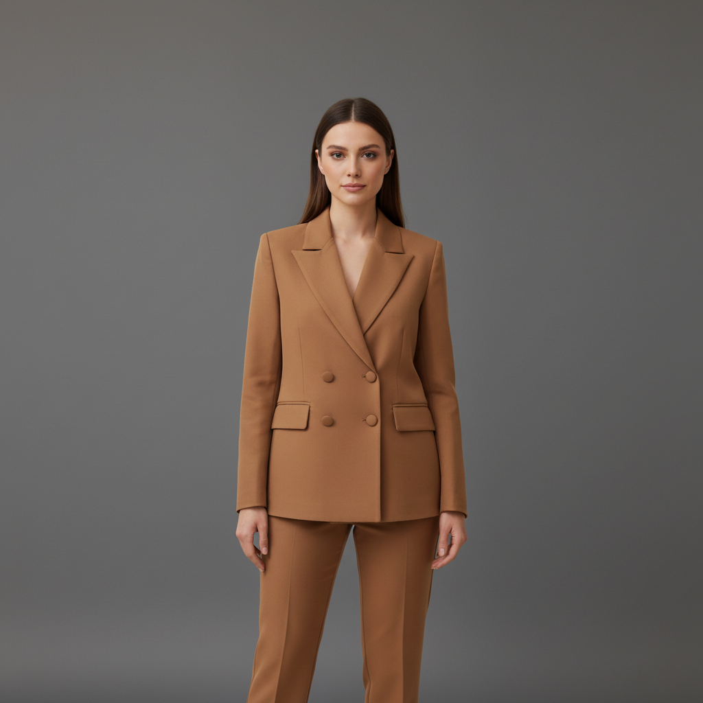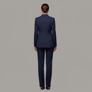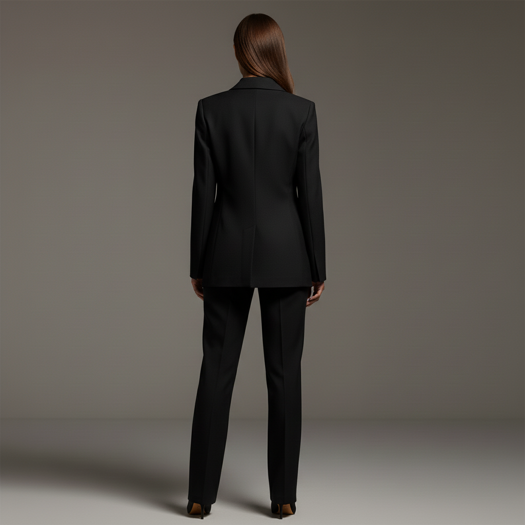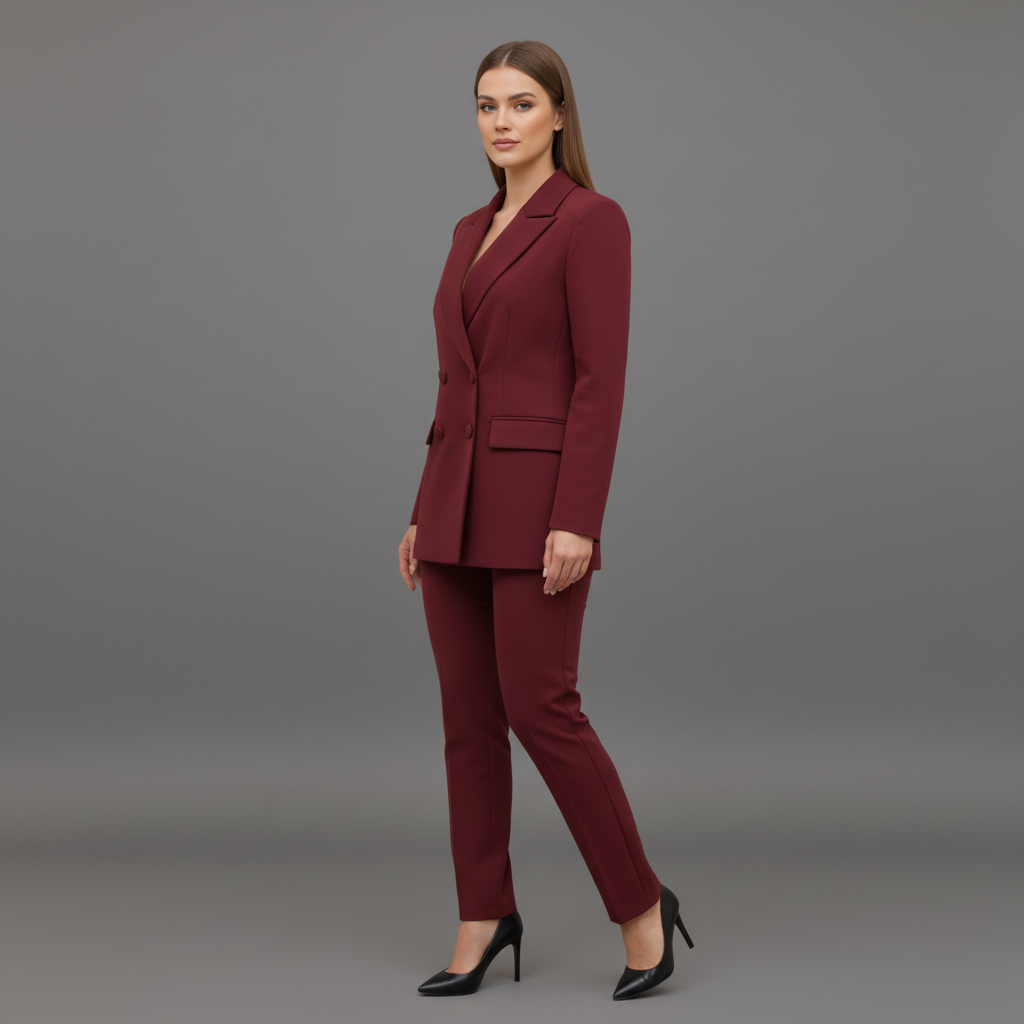 This Double-Breasted Tailored Suit features a structured blazer with sharp lapels and clean lines, paired with straight-leg trousers that create a polished and elongated silhouette. Crafted from premium fabric, it offers an elegant drape, comfortable wear, and a timeless presence suitable for business meetings, formal events, and evening occasions.